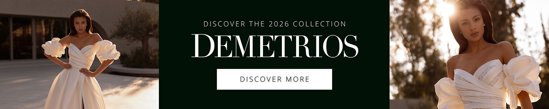 Suomessa Demetrios-tuotemerkin löydät Hääpukuliike Mariéesta.