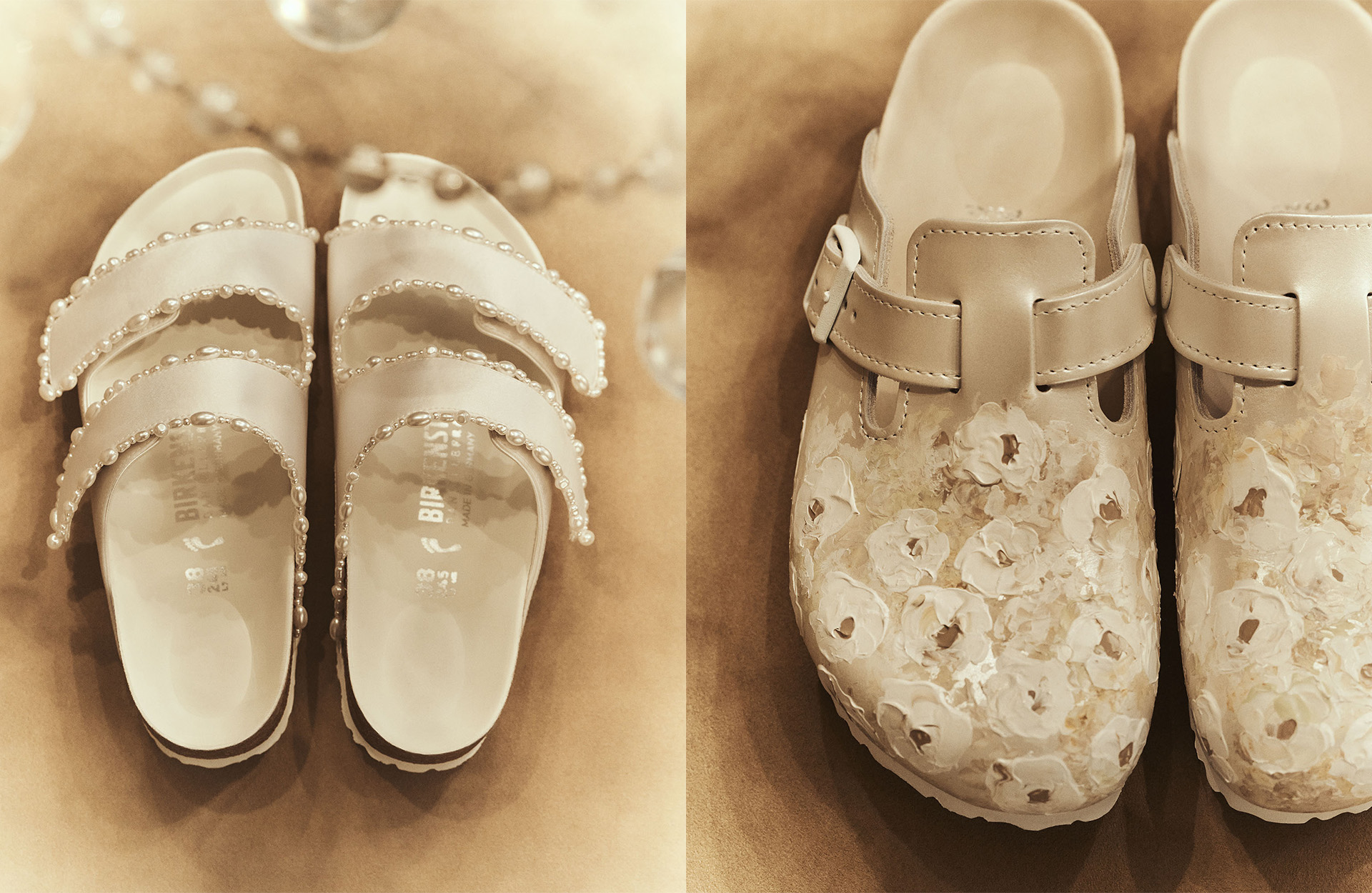 Toiminnallinen mukavuus kohtaa modernin morsiusmuodin, kun Birkenstock ja Danielle Frankel tulkitsevat klassiset sandaalit uudelleen satiinin, helmien ja käsintehtyjen yksityiskohtien kautta.