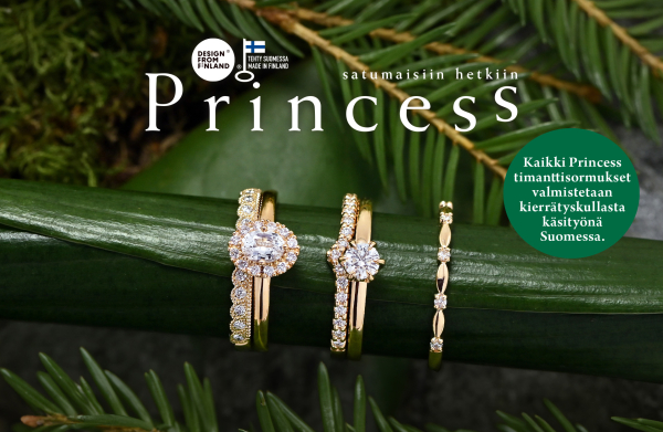 Princess timanttisormukset suunnitellaan ja valmistetaan Suomessa. Tästä tunnuksena Princessille on myönnetty Suomalaisen Työn Liiton Avainlippu tunnus ja Design from Finland…