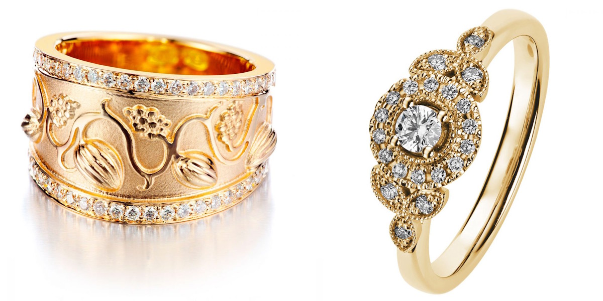 Hyvä esimerkki romanttisesta näyttävyydestä on Kohinoorin Clara Queen -timanttisormus, jossa keskikiveä ympäröi suuri määrä pieniä kiviä. Sormuksessa on yhteensä 21 timanttia. Yhdessä ne muodostavat kukkaa ja terälehtiä muistuttavan kokonaisuuden. Lumoavan Eden puolestaan edustaa modernimpaa ja rohkeampaa tyyliä. Leveä, kuvioitu runko ja kymmenet laboratoriotimantit tekevät siitä persoonallisen valinnan.