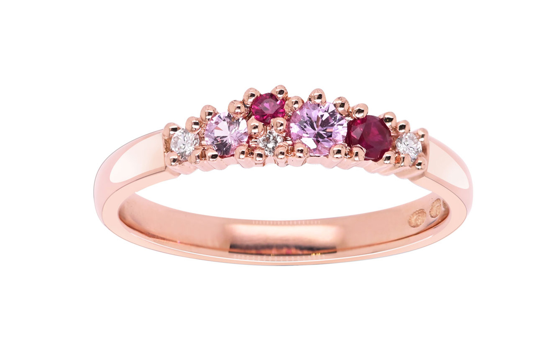 Princess Marianne timantti-safiiri-rubiinisormus yht. 0,05ct W/SI 14K kierrätyskultaa